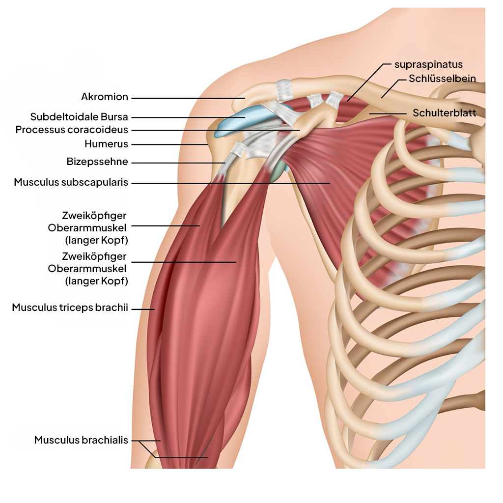 Die Schulter ist das beweglichste Gelenk Ihres Körpers. Sie ist ein Kugelgelenk, das fast nur durch Muskeln, Sehnen und Bänder gehalten wird (die sogenannte Rotatorenmanschette). Das macht sie extrem flexibel – aber auch extrem instabil.