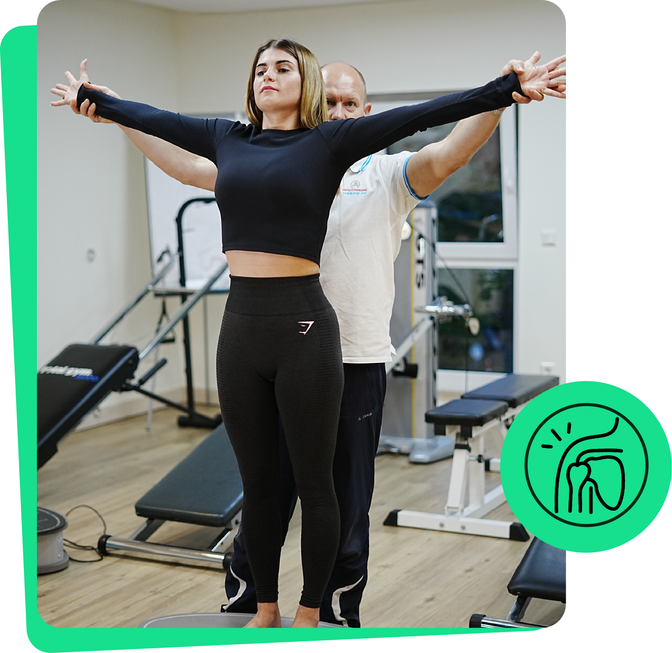Du hast Schmerzen in der Schulter. Du bekommst Massagen, Elektrotherapie, vielleicht Tape.